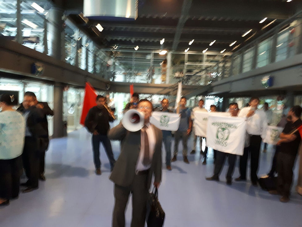Acompañados por organizaciones como "Brigada 1" e integrantes del "Partido Comunista de México", los trabajadores denominados "Resistencia IMSS" trasladaron su protesta al exterior del edificio cerrando los accesos por algunas horas y exponiendo la complicidad que existe entre la autoridad, la patronal y el sindicato.