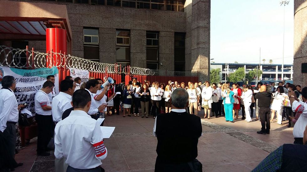 En el Palacio de Justicia Federal con sede en la Ciudad de México el dirigente del gremio, Jesús Gilberto González señaló que existen despidos sin previo juicio o garantía de audiencia e incluso, algunos trabajadores decidieron renunciar antes de ser cesados para buscar opciones de trabajo en otras entidades en el mismo ámbito judicial.